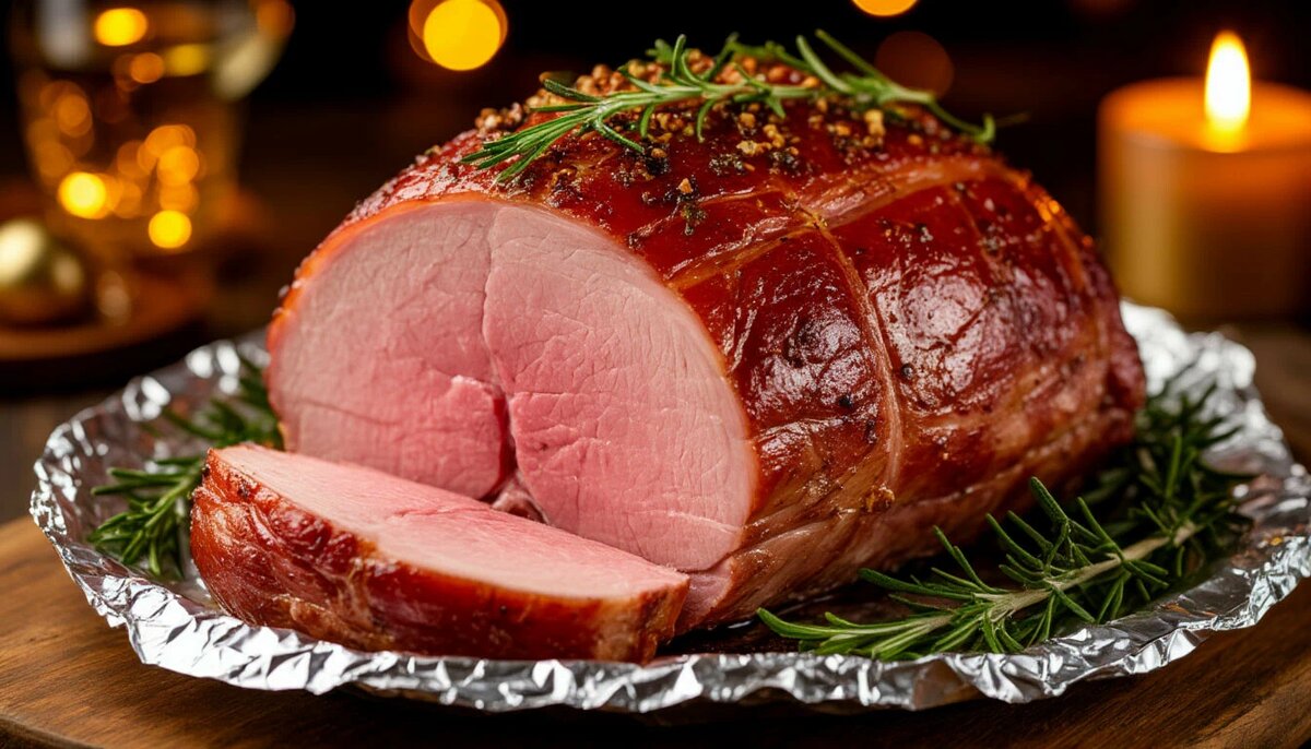 Свиной окорок, запечённый в фольге, — это невероятно вкусное и сочное блюдо, которое отлично подойдёт для празднования Нового года. Благодаря правильно подобранным ингредиентам и технике приготовления, мясо останется нежным и ароматным. Давайте разберемся, как приготовить такое чудо дома. ## Ингредиенты: - Свиной окорок (без кости) — 1,5 кг - Чеснок — 5-6 зубчиков - Горчица французская — 2 ст. ложки - Соевый соус — 2 ст. ложки - Растительное масло — 2 ст. ложки - Соль, перец — по вкусу - Розмарин свежий или сушёный — по вкусу ## Приготовление: ### 1. Подготовка мяса: - Промойте окорок под холодной водой и обсушите бумажным полотенцем. - Сделайте несколько неглубоких надрезов и вставьте в них зубчики чеснока. ### 2. Маринад: - В глубокой миске смешайте горчицу, соевый соус, растительное масло, соль, перец и измельчённый розмарин. - Тщательно натрите мясо полученной смесью, убедившись, что маринад попал в разрезы с чесноком. ### 3. Запекание: - Герметично заверните окорок в фольгу, полож
