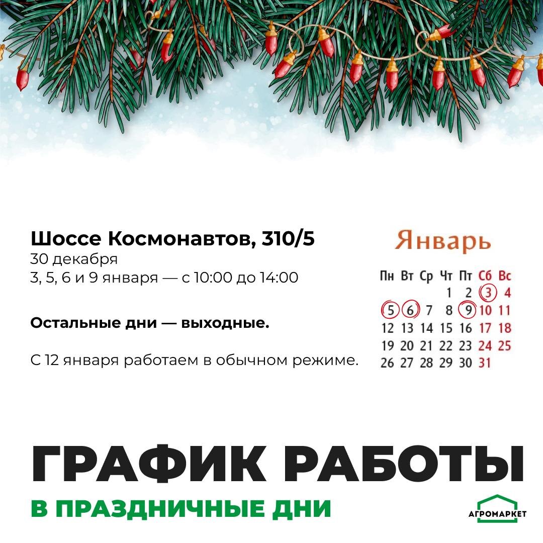🎄 🟢 30 декабря — обычный рабочий день 🟢 3 января — с 10:00 до 14:00 🟢 5 и 6 января — с 10:00 до 14:00 🟢 9 января — с 10:00 до 14:00 🔴 Остальные дни — выходные. 🎉 С 12 января работаем в обычном режиме. 👍 Желаем Вам хороших выходных, с Наступающим новым Годом.