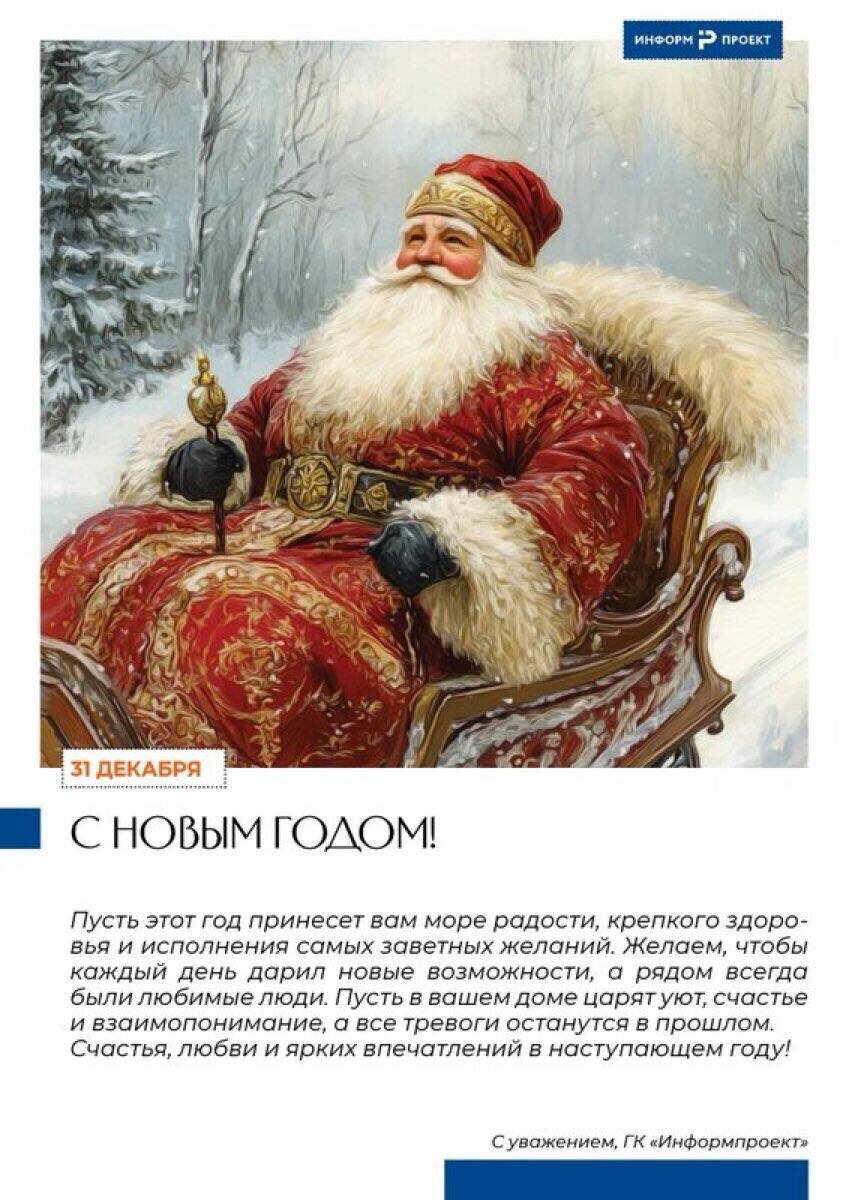 «Информпроект» поздравляет Вас с наступающим 2026 годом. Пусть Вашим целеустремленным движениям вперед всегда сопутствует успех и удача! 🎆