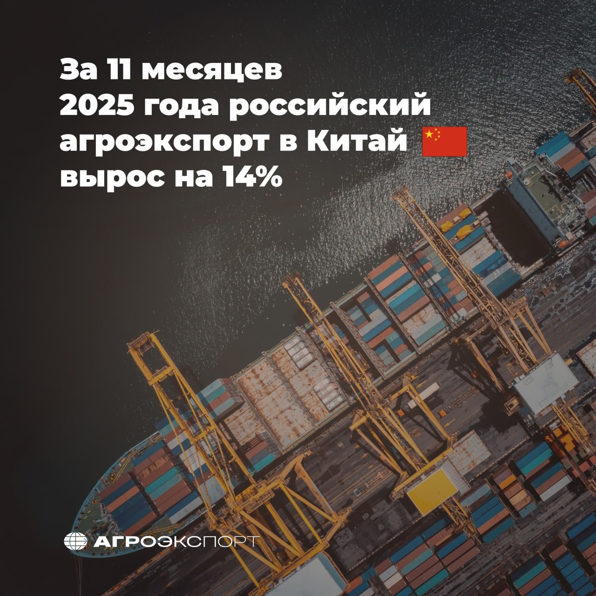 За 11 месяцев 2025 года российский агроэкспорт в Китай вырос на 14%