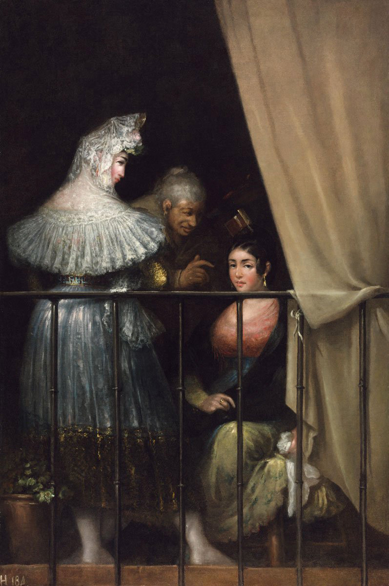 Художник-романтик Леонардо Аленса-и-Ньето (1807–1845) считается одним из самых талантливых последователей Франсиско Гойи (1746–1828). В этой работе трагически недолго проживший художник воссоздал любимый сюжет своего кумира: мах, то есть молодых девушек в роскошных нарядах, смотрящих с балкона на улицу. В XIX веке это было разговорное название молодых жительниц окраин Мадрида. Пожилая женщина позади них — Селестина, знакомый персонаж из классической испанской литературы. Старая сводница устраивала свидания для молодых людей — в большинстве случаев за деньги. На картине она что-то шепчет на ухо всё ещё застенчивой девушке: вероятно, она рекомендует ей молодого человека, наблюдающего за ней с улицы. Картина была написана в 1834 году. Её размер 193.5 x 130 см. P.S. Приглашаем вас посетить наш телеграмм-канал, там много всего интересно. А уж сколько прекрасных картин у нас в вк. Ждём вас с нетерпением!