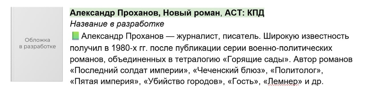 Начну с того, что в следующем году выйдет новая книга Александра Проханова, чей "Лемнер" наделал много шума в 2025 году.