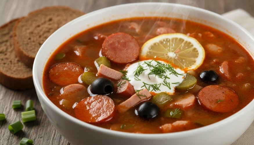 Здравствуйте, дорогие мои! С Новым годом вас! 🎄 Как ваше настроение? Надеюсь, праздник прошел весело и вкусно. У меня, как и у любой экономной хозяйки, 1-го и 2-го января возникает вопрос: что делать с “богатством” в холодильнике? Тарелки с колбасной и мясной нарезкой, недоеденная буженина, кусочек копченой курицы… Выбрасывать такие продукты — рука не поднимается! И тут на помощь приходит королева зимних супов — Сборная мясная солянка. Это не просто суп, это настоящий спасатель после бурных застолий. Густая, пряная, с кислинкой — она моментально возвращает к жизни и согревает. А главное — она позволяет “утилизировать” все мясные остатки так вкусно, что домашние будут просить добавки. Сегодня поделюсь своим проверенным рецептом и главным секретом, который делает бульон по-настоящему “ресторанным”. Дайте солянке настояться под крышкой хотя бы 15-20 минут. Это обязательно! Подача: