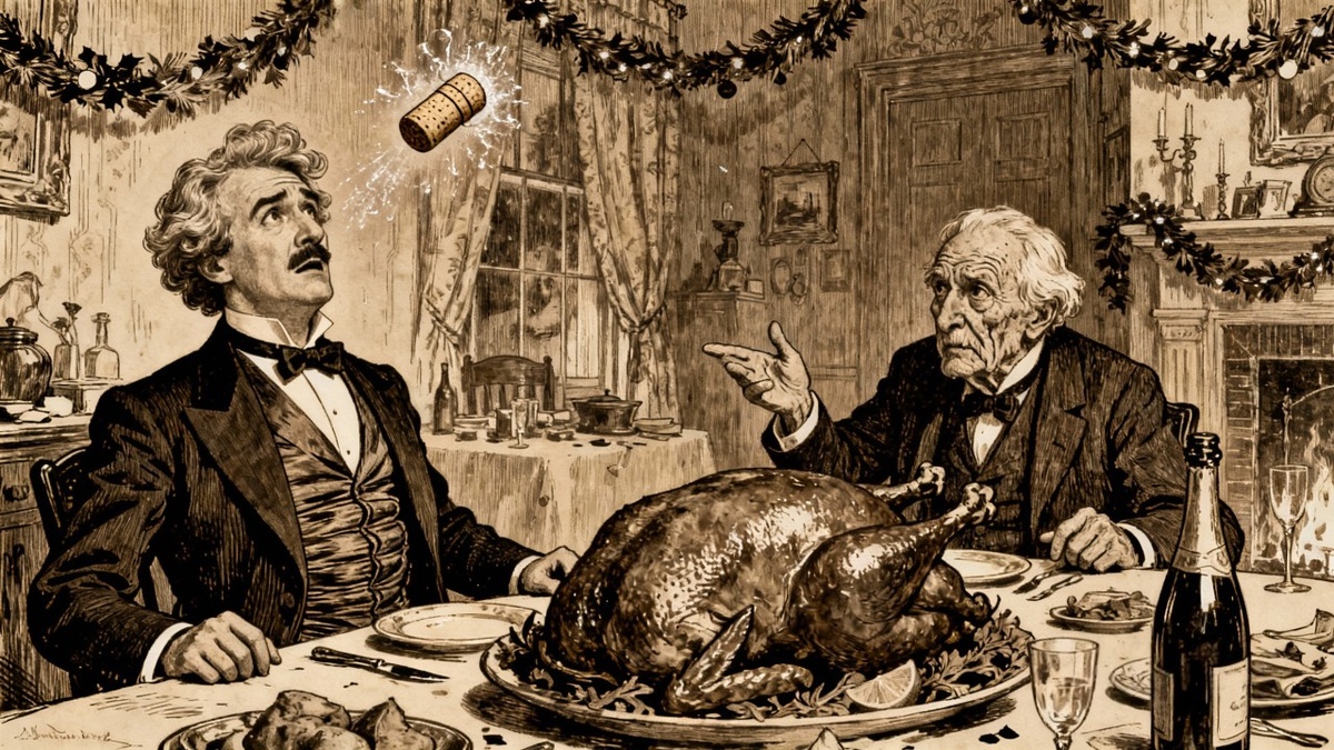 Новый год — это ежегодная катастрофа, которую человечество почему-то привыкло встречать с энтузиазмом, достойным лучшего применения. Это время, когда каждый уважающий себя грешник решает, что с первого января он станет святым, трезвенником и образцом благоразумия. Лично я начал подготовку к этому превращению еще за неделю до праздника, составив список «Новых правил жизни», состоящий из сорока пунктов, половина из которых была посвящена тому, как не злиться на соседей, а вторая — как перестать есть пироги в полночь. Тридцать первого декабря мой дом напоминал осажденную крепость. Тетушка (в каждом доме есть своя «тетушка Полли», даже если ее зовут иначе) развила такую энергию, что, если бы ее можно было направить в мирное русло, мы бы достроили Панамский канал за три дня. Она заставила меня чистить серебро, которое не видело света со времен Гражданской войны, и вешать гирлянды так высоко, что я дважды едва не отправился к праотцам, запутавшись в проводах и собственной гордости. К восьми