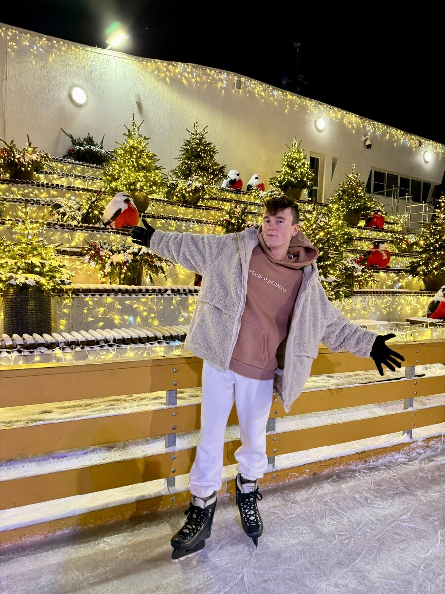 Вчера я лёг почти в 5 утра, потому что вечером с друзьями мы пошли кататься на коньках на каток, а потом поехали в центр города смотреть на