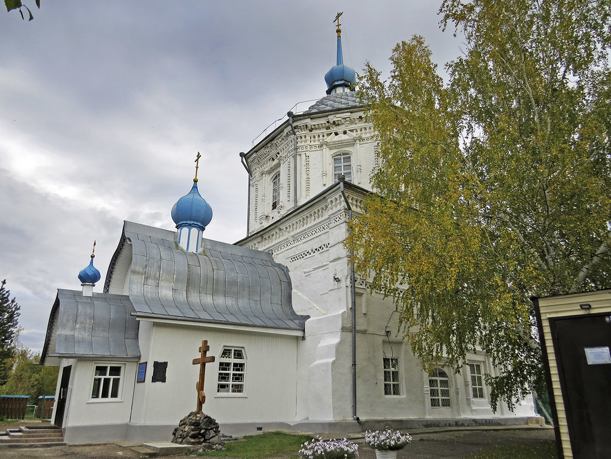 В старинном Енисейске за его интереснейшим музеем можно свернуть с главной улицы Ленина даже не в переулок, а так - проезд внутри двора. Он упирается в обычный дощатый забор, за которым стоит Воскресенская церковь (1735-47):