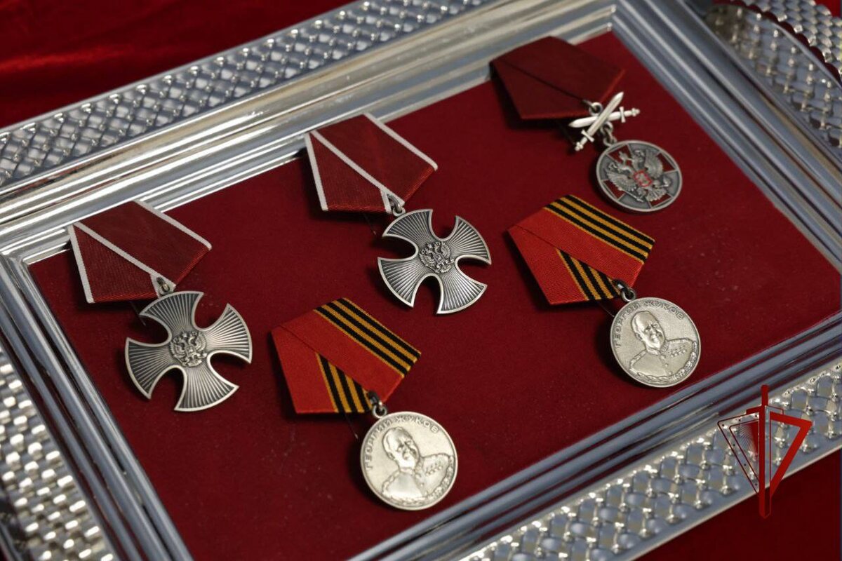Указом главы государства росгвардейцы удостоены орденов Мужества, медали ордена «За заслуги перед Отечеством» I степени с мечами и медалей Жукова. После вручения наград генерал-полковник Юрий Аверин поздравил раненых бойцов с наступающими праздниками и передал им ценные подарки от АНО «Победоносец».