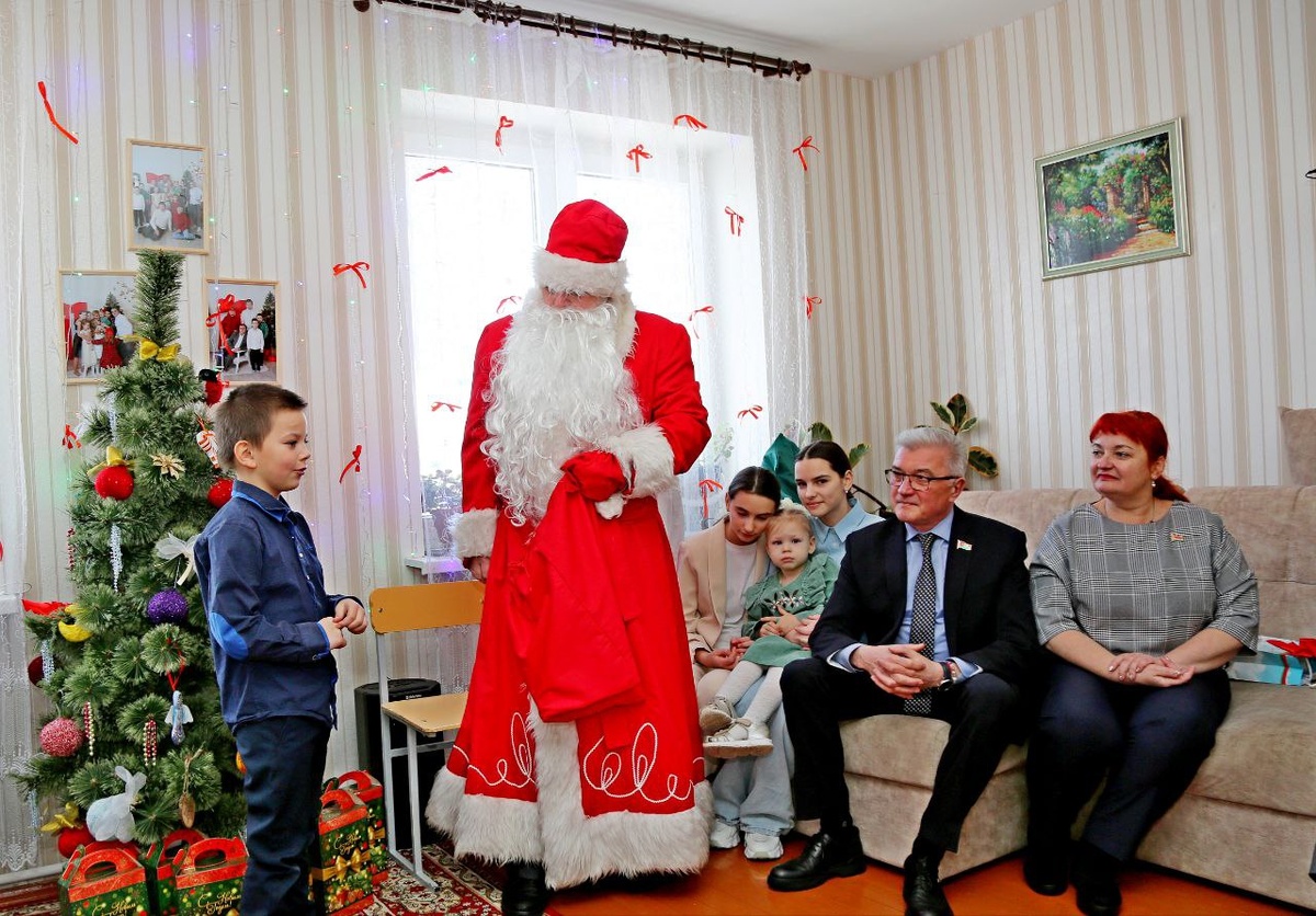 🎁Гости вручили семье подарки, которые станут помощниками в быту, а детей порадовали сладкими подарками. 🎼В ответ на внимание ребята подготовили настоящий сюрприз – праздничное выступление со стихами и музыкальными композициями. А также рассказали гостям, как прошел 2025 год, продемонстрировав видеоролик, поделились своими успехами и достижениями. ✨В завершение встречи гостям вручили сувениры, сделанные с любовью своими руками.