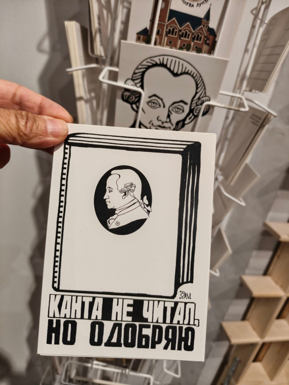 Самое прекрасное и красивое, что может быть в музеях :)) Шутка! Но я очень рада, когда сувениров в музеях есть много и они качественные. Понятно, что столичные крупные музеи занимаются этим отдельно и специально, а у кого-то просто нет средств и сотрудников для этого, но.... В калининградских музеях с сувенирами все ок! Все еще 26 июня этого года! Сначала сувениры из музея изобразительных искусств. Тут я как раз купила эту замечательную открытку Очень злободневное. Про Дом Советов, который так и не смогли достроить на месте Кёнигсбергского замка за 30 лет, а потом и вовсе разобрали (место проклятое) ходила городская легенда — что по ночам он превращается в гигантского робота :) Это тоже местная тема, ворон действительно солили и заготавливали на Крушской косе 0_0 Не только столица области! Кант во всех видах. Раньше были бюстики Горького (у мамы до сих пор стоит!), а теперь вот... То, что я просто обожаю и скупала бы улицами! Прикольная настолка :) Кстати, у нас такая есть в ЦАГИ, на н