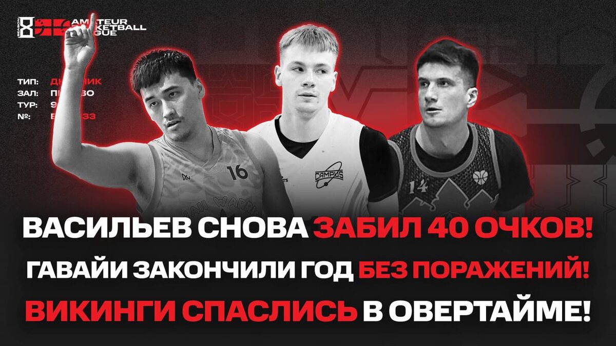 ) 🎹Васильев снова забил 40 очков! 👀Гавайи закончили год без поражений! 😎Викинги спаслись в Овертайме! 17:00 📱Ссылка 📱Наш сайт 📱Группа Вконтакте 1️⃣@ABL Moscow