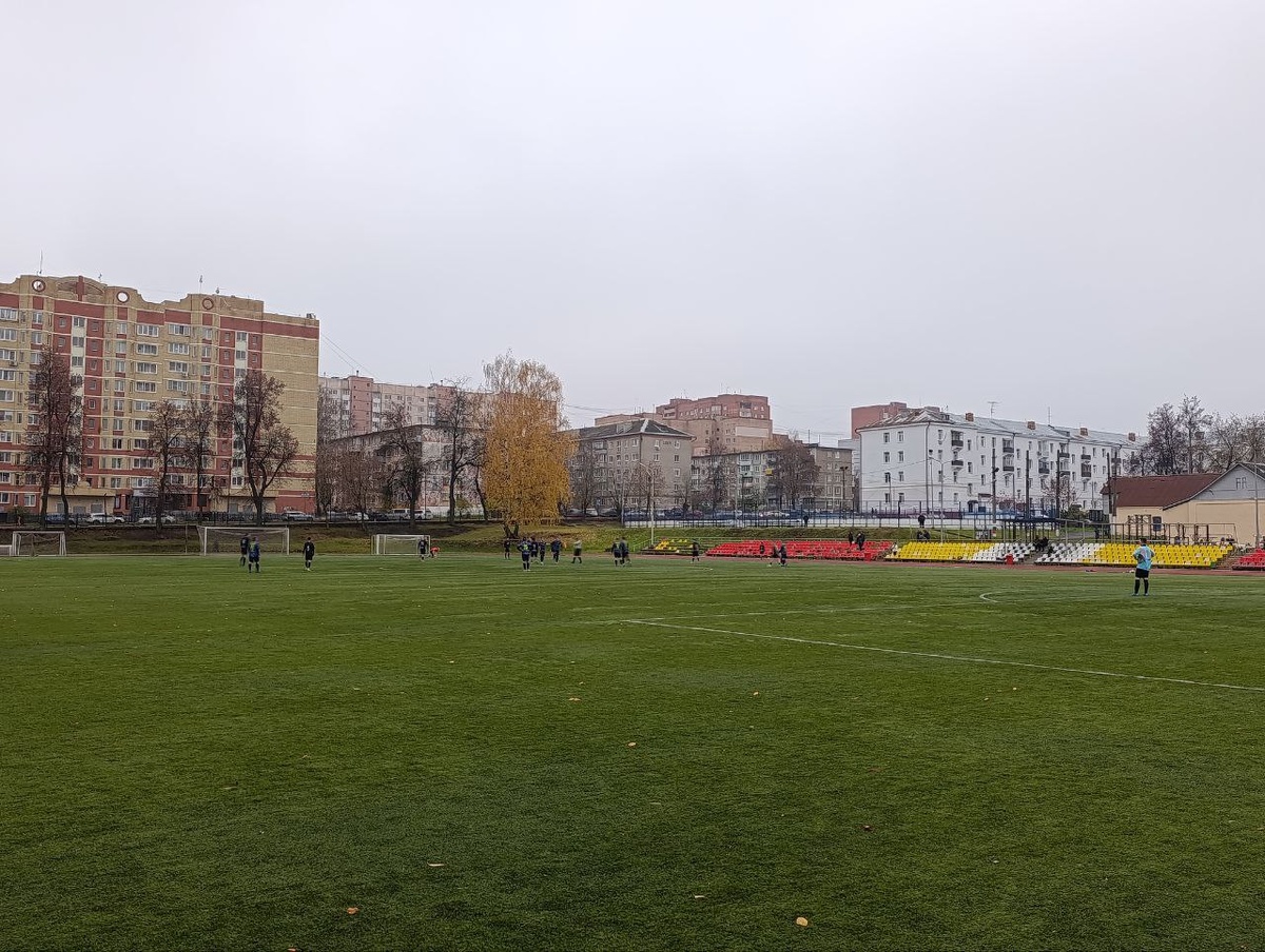 Давненько на канале не было настоящего сурового граундхоппинга. Ещё в конце октября у меня случилась увлекательная поездка в Павловский Посад, где помимо прогулки по парку Меленки близ знаменитой Платочной мануфактуры и прочего, я сходил на матч КФК Московской области. В последнем туре Лиги В-2 (это седьмой уровень в пирамиде российского футбола) играли местный «Диат» и «Фряново» из одноимённого посёлка ныне приписанного к городскому округу Щёлково. Пейзаж и окружение игры в духе типичных хтонических зарисовок российских футбольных подвалов: серость, разруха, порядка десяти человек на трибунах (по протоколу нашлось аж 30), которые даже не садятся, потому что холодно и мокро, навесы и ограждения против непогоды, предсказуемо, отсутствуют. Уровень организации – протокольный минимум. Из официальных лиц – лишь один арбитр в поле (без боковых) и женщина-врач. Поле – стандартный муниципальный стадион с искусственным газоном среднего качества и одной трибуной на несколько сотен мест. Ворота б