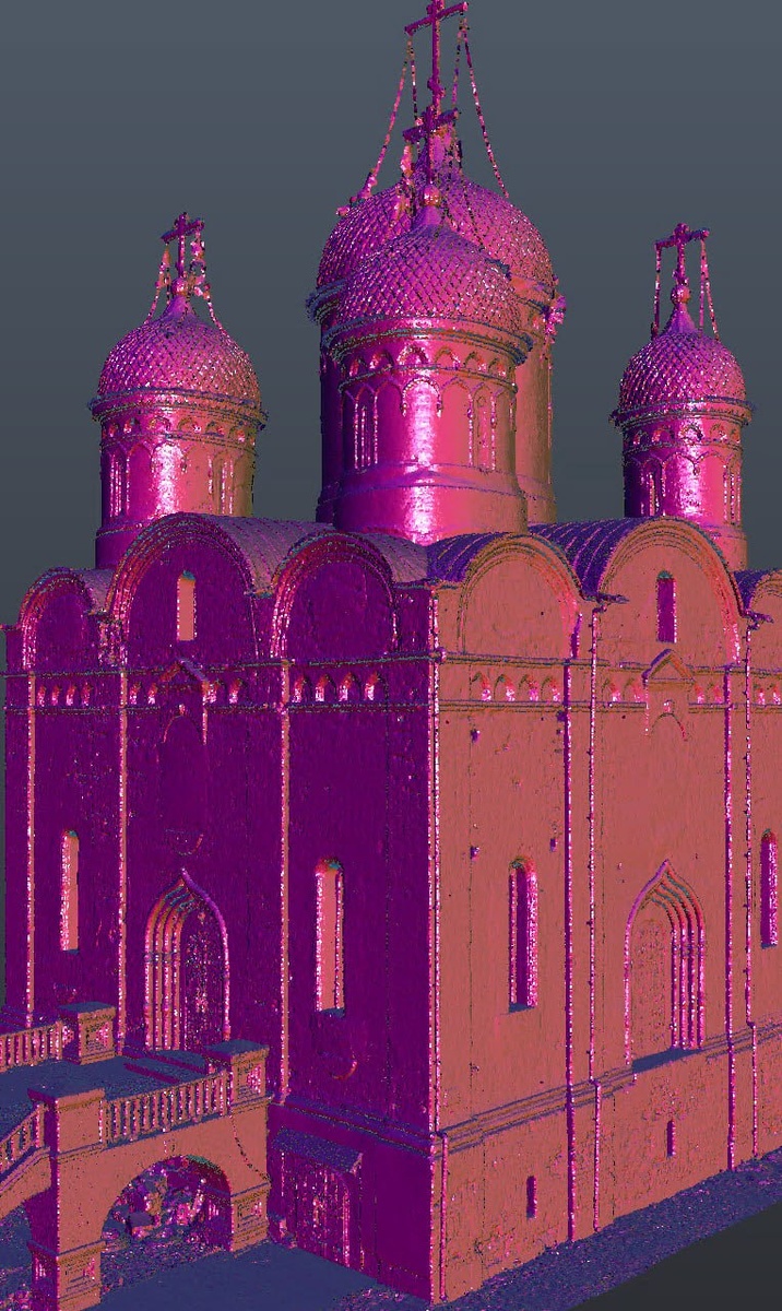 Можайскую церковь обработали. Повезло с погодой, равномерный свет и немного дождя. Так что блеск кровли не внёс много ошибок, покрытие гладкое, без бугров практически. Цвет равномерный. Пробовал я множество delight методик. И после создания модели, и на raw фотографиях. Нет волшебного помощника в этом. NVIDIA выпустила нейросеть для delight видео, но она пока только на 512х512 пикс работает. А мне нужно 20-60 мегапикселей, это 5К и 10К пикс по длинной стороне... Внутри снимали только сканером, выходные данные красивые, информативные и занимают немного места: 🔹RCP проект облака точек весит 3.8 Гб 🔹RCP сжатый 1.5 Гб
