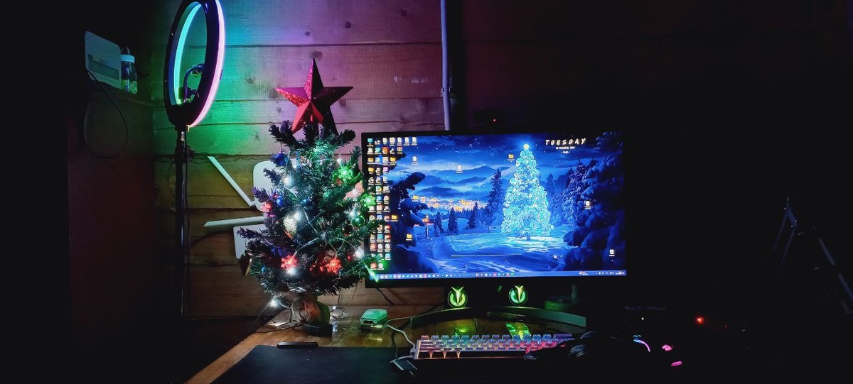 Вот украсил ёлку и поставил её на компьютерный стол, новогодний вайб ещё есть