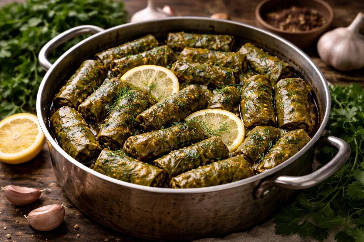Долма пугает ровно до того момента, пока не начнёшь её делать Есть блюда, которые заранее кажутся сложными. Долма — одно из них. В голове сразу картинки: листья рвутся, фарш вылезает, руки в соке, настроение падает ещё до середины процесса. Но правда в том, что долма — это не про сложность, а про подход. Если убрать суету и делать всё спокойно, она собирается быстро и даже приятно. Без напряжения и без ощущения, что ты ввязался во что-то слишком трудоёмкое. Обычно всё портит не рецепт, а ожидания: • пытаются заворачивать слишком мелко; • берут неподготовленные листья; • кладут слишком много начинки; • торопятся, как будто это соревнование. А долма этого не любит. Она хорошо получается тогда, когда движения простые и повторяемые, без перфекционизма. Для начинки: • фарш (говядина или смесь с бараниной) 600–700 г • рис 80–100 г • лук 2 средних • зелень (петрушка, укроп, кинза) • соль, чёрный перец Для сборки: • виноградные листья — свежие или консервированные • немного растительного масла