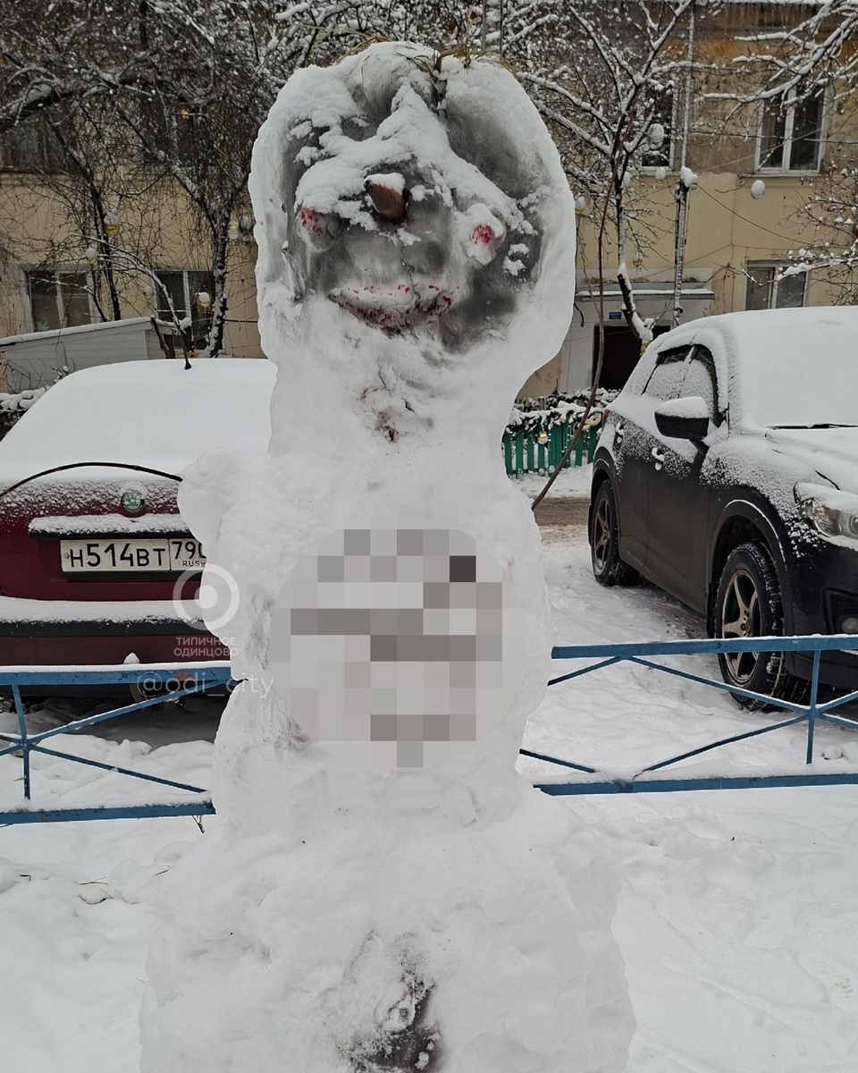 Прошлой ночью в 6-м микрорайоне (посёлок БЗРИ) неизвестные вандалы разрисовали вход на каток, новогодний плакат и снеговика