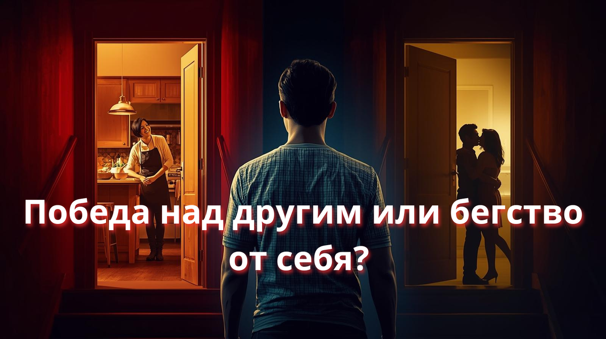 Недавно я наткнулся на статью коллеги с очень метким, бытовым названием: «Жена соседа». В ней автор разбирала феномен, когда мужчин тянет не к свободным, а именно к занятым женщинам: жёнам друзей, коллегам, соседкам. Основные тезисы были таковы: это азарт охоты «эффект чужого значит, ценного», интерес не к женщине, а к процессу завоевания «интерес к победе, а не к призу» и даже роль «спасителя» из не самых здоровых отношений. Проще говоря, это соревнование с другим мужчиной, где женщина трофей. Прочитав это, я подумал: да, это ярко и лишь верхушка айсберга, обращённая наружу. А что там, в тёмной, холодной воде, у его основания? Мой опыт и практика подсказывают, что часто под этой «охотой» скрывается куда более простая и человеческая вещь и это БЕГСТВО. Давай разберём этот феномен не как осуждение, а как диагноз, чтобы понять, как с ним жить и можно ли его перерасти.
