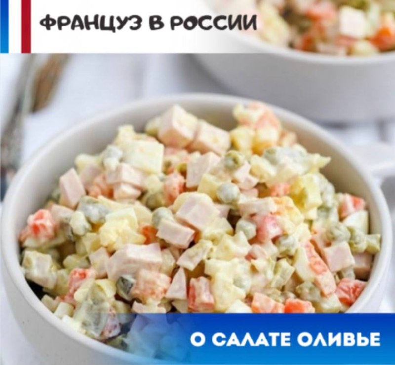 ΠΎΠΌ (ΠΎΡΠΎΠ±Π΅Π½Π½ΠΎ Ρ ΡΡΡΡΠΎΠΌ, ΡΡΠΎ Π΅Π³ΠΎ ΠΏΡΠΈΠ΄ΡΠΌΠ°Π» ΡΡΠ°Π½ΡΡΠ·. ΠΠ°ΠΊ ΠΆΠ΅ ΠΌΠ½Π΅ Π½Π΅ ΡΡΡΠ΄Π½ΠΎ!) Π Π΄Π°Π»ΡΡΠ΅, Π·Π½Π°ΠΊΠΎΠΌΡΡΠ²ΠΎ Ρ ΠΡΠΎΠ½ΠΈΠ΅ΠΉ ΡΡΠ΄ΡΠ±Ρ ΠΈ ΠΎΠ΄Π½ΠΈΠΌ Π²Π°ΠΆΠ½ΡΠΌ ΠΊΡΠ»ΠΈΠ½Π°ΡΠ½ΡΠΌ ΠΏΡΠ°Π²ΠΈΠ»ΠΎΠΌ, ΠΊΠΎΡΠΎΡΠΎΠ΅ ΡΡΡΡΠΊΠΈΠ΅ ΡΠ°ΡΡΠΎ Π½Π°ΡΡΡΠ°ΡΡ. π Π§ΠΈΡΠ°ΠΉΡΠ΅ ΠΏΠΎΠ»Π½ΡΡ ΠΈΡΡΠΎΡΠΈΡ Π·Π΄Π΅ΡΡ (ΠΎΠ½Π° ΡΠΎΠ³ΠΎ ΡΡΠΎΠΈΡ) Π‘ΠΏΠΎΠΉΠ»Π΅Ρ: Π² ΠΊΠΎΠ½ΡΠ΅ Ρ ΠΊΡΠΈΡΡ Β«Vive la bΓ»che, vive la salade olivier!Β». Π ΡΡΠΎ ΠΈΡΠΊΡΠ΅Π½Π½Π΅.