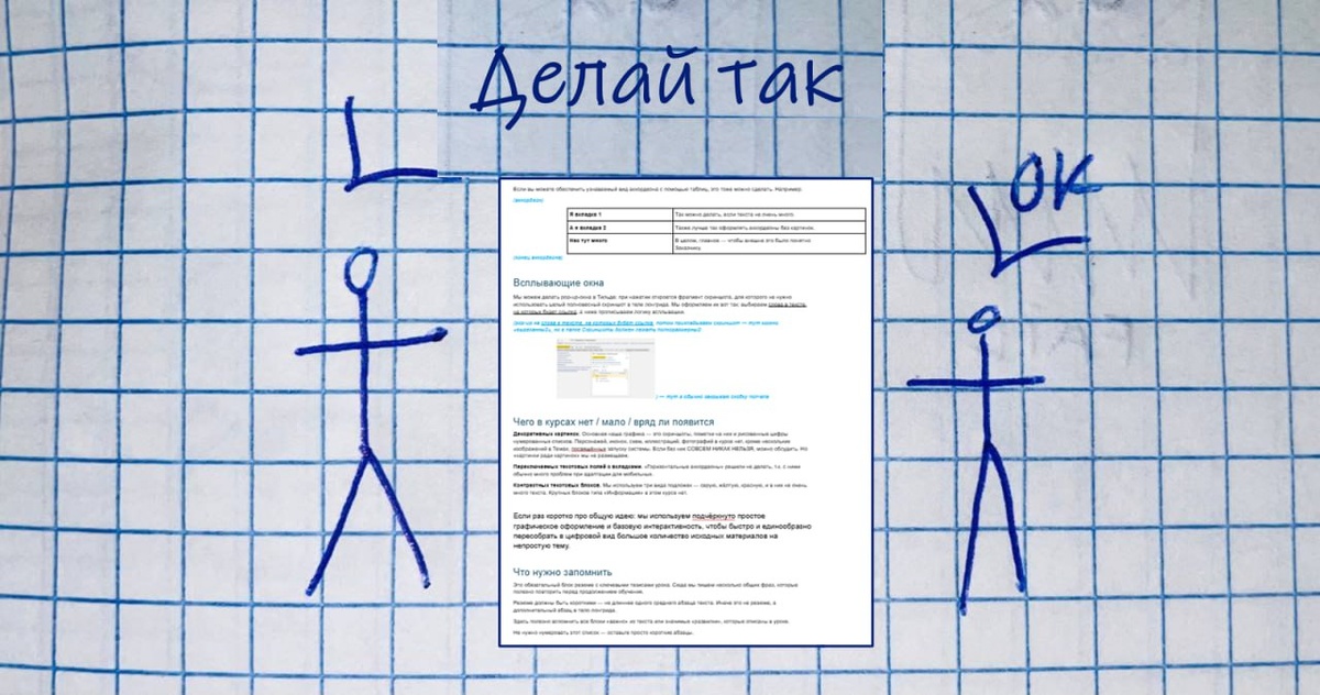 Простая концепция, об отсутствие которой легко споткнуться второпях. 📝 Контекст Сценарий в eLearning — это подробное текстовое описание будущего учебного материала. Документ, который включает весь текстовый контент, а также референсы нужной графики и описание интерактивных элементов. По сути, сценарий — это не столько текст, сколько подробная разметка, что где написано, как оформлено, что на что нажимается и что при этом происходит. Какие с ними бывают сложности: 1️⃣ У разных исполнителей — разный опыт со сценариями Работая с редакторами вместо классических разработчиков, сейчас вижу это очень явно. Даже продвинутая CMS для оформления статей на сайтах не приближается к вложенности и интерактивам в типовом электронном курсе, поэтому для ребят из коммерческой редактуры эти возможности — в новинку. 2️⃣ Мало показать — нужно объяснить, что и как Это прямое продолжение предыдущего пункта. Да, можно объяснить, что «в материале можно использовать аккордеоны, вкладки и маркеры на изо