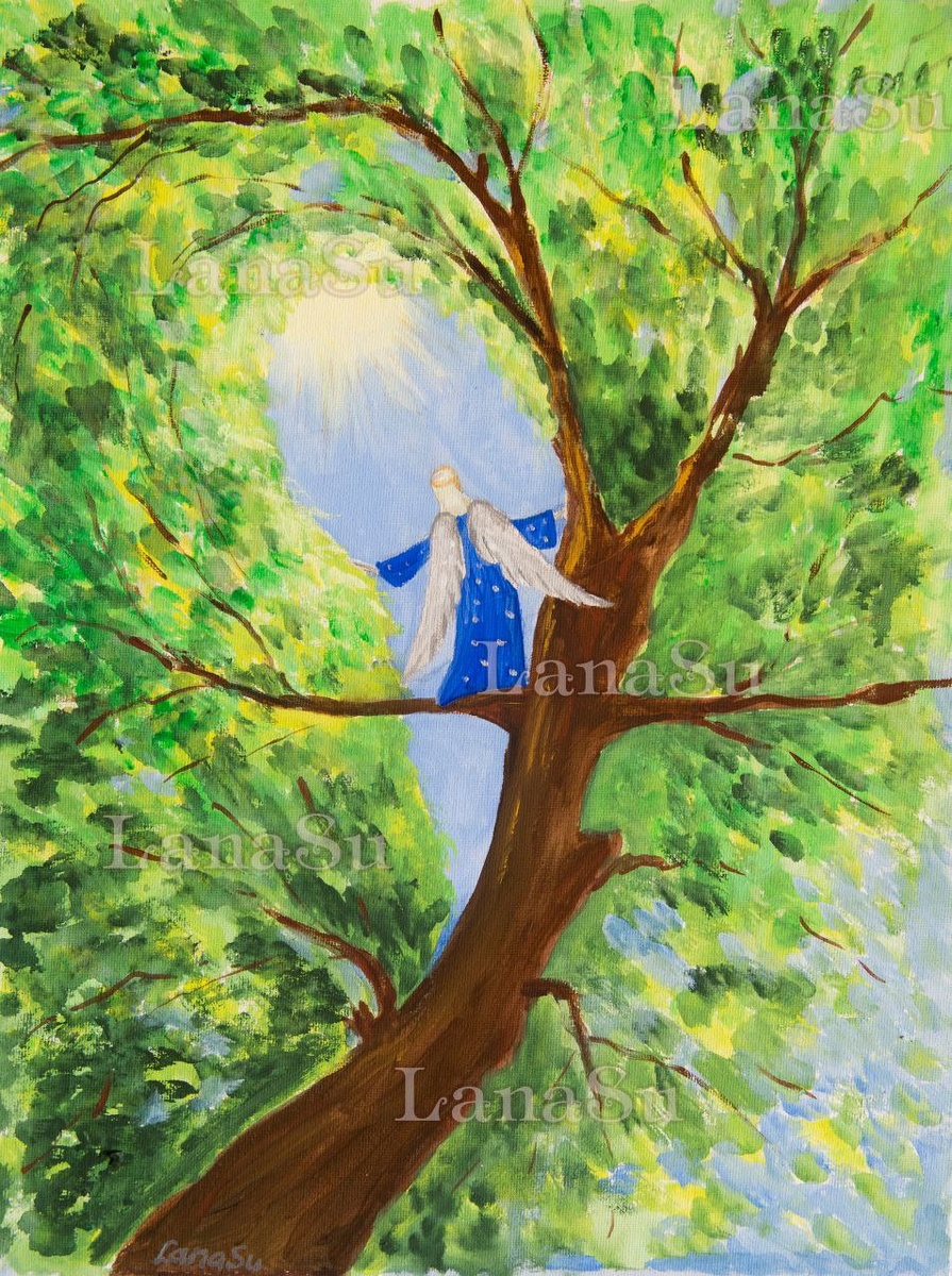 Одна из моих последних работ "Взглянуть на мир глазами ангела" (холст, акрил, 45*35), и еще на нашей предновогодней встрече Арт-клуба одной