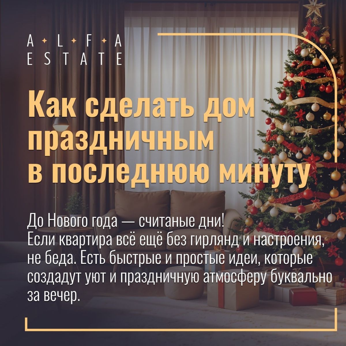 До Нового года остается все меньше времени. Если вы еще не украсили квартиру - самое время это исправить! Каждый декабрь одно и то же: дела, встречи, подарки, суета - и вот уже за окном елочные базары, а дома ни гирлянды, ни уюта. Узнаете себя? Но не все потеряно — еще можно успеть! Мы собрали простые, быстрые и бюджетные идеи, которые за пару минут создадут праздничную атмосферу. Все из того, что уже есть дома, или с маркетплейсов за копейки. В карточках покажем, как именно: - где повесить гирлянды, чтобы сразу стало уютнее; - как сделать стильную новогоднюю композицию без лишних затрат; - и пару фишек, чтобы квартира выглядела «как в Pinterest». А вы уже нарядили квартиру к празднику? Кидайте фото в комментарии - посмотрим, у кого дома уже ощущается Новый год 🎁 Хотите приобрести квартиру? Пишите @Vinogradovrealty ALFA ESTATE✨Недвижимость СПб