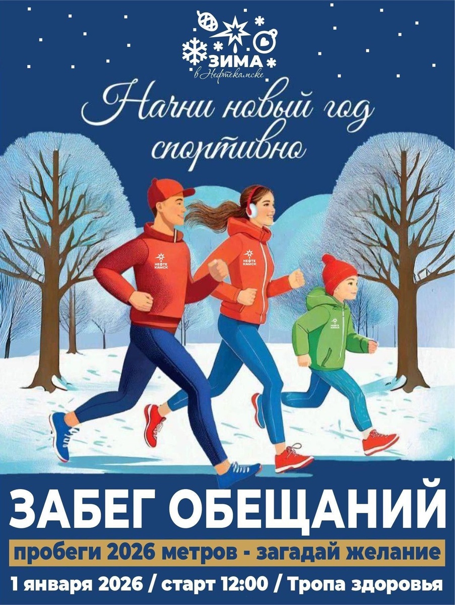 »! 👟✨ 1 января – отличный повод начать год с позитивного настроя и новых свершений! Присоединяйтесь к забегу и сделайте первый шаг к своим целям уже в новом году. 📅 Дата: 1 января, 12:00 🏃♂️ Место: Тропа здоровья Что вас ждет: ☑️Позитивный старт нового года. ☑️Возможность поставить себе цель и начать двигаться к ней. ☑️Поддержка единомышленников. ☑️Хорошее настроение и заряд бодрости! Не упустите шанс начать год активно и с пользой! Приходите на «Забег обещаний». #новыйгод2026 👉 Подписаться на канал
