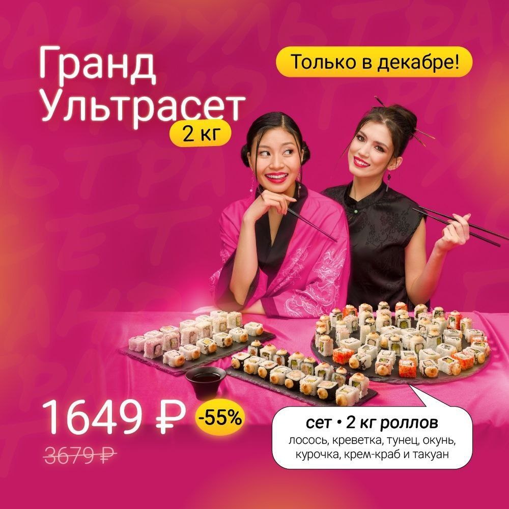 Гранд Ультрасет 2.0 кг! Сет, превращающий обычный стол в праздничный 🍣 ✨всего за 1649₽ 1,4 кг и 56 роскошных тёплых роллов, собранных так, чтобы понравилось всем: 🔥 жареный лосось 🐟 копчёный лосось 🦐 креветки в темпуре 🍄 шампиньоны 🐠 тунец 🍗 курочка 🦀 крем-краб Предзаказ к 31 декабря уже открыт! Выбирай удобное время и заказывай украшение стола 👉sushifuji.ru/PwD Больше акций в нашей группе 👉 https://t.me/sushifuji_kdr 📱 8 (812) 213-01-23