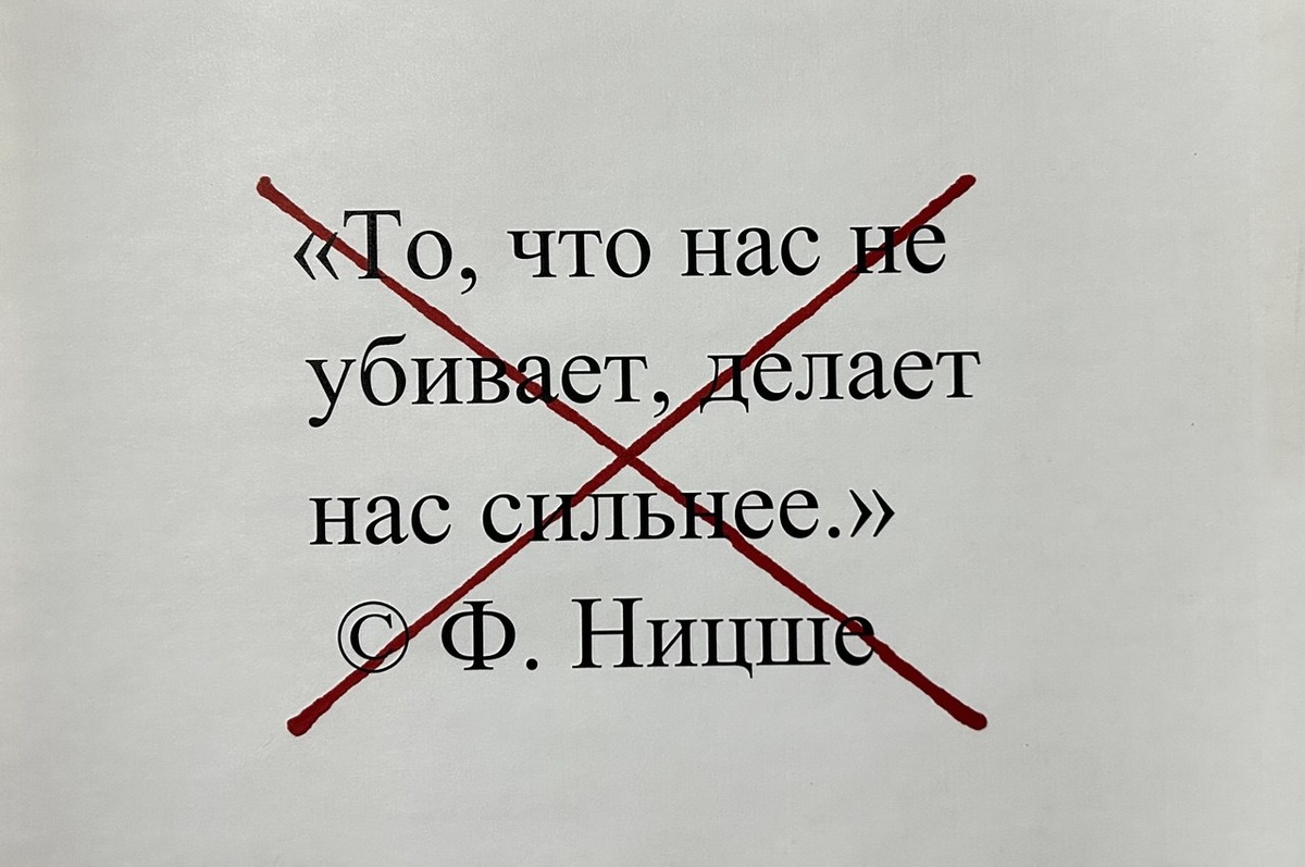 Мы убеждены, что страдания делают нас достойнее, и, чем нам будет тяжелее по жизни, тем крепче будет наш характер. А боль — это плата за хороший результат. Мы возвели боль в своеобразный культ и продолжаем считать, что страдания — это необходимая часть нашего жизненного пути, чтобы стать лучше.