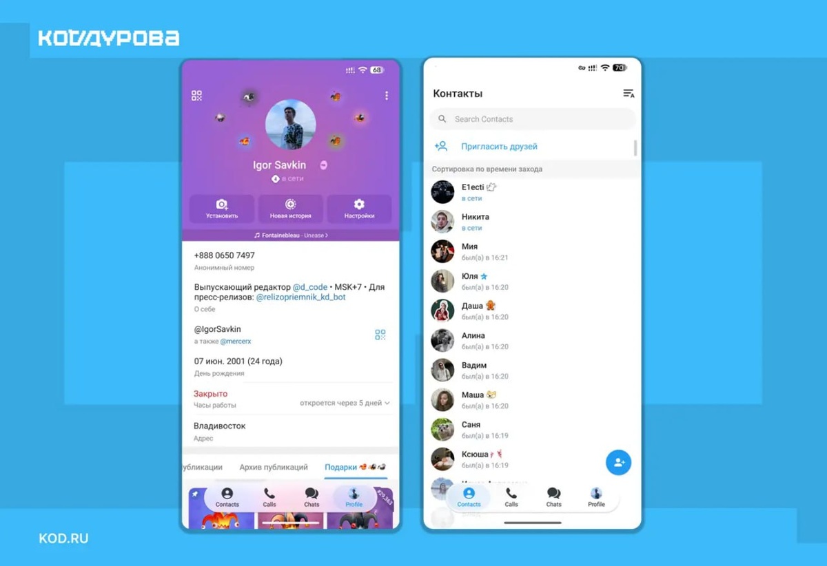 ? Мессенджер начал тестировать обновленный интерфейс приложения для неяблочных пользователей. Главное обновление — отказ от шторки в боковом меню и появление вместо нее плавающей панели с ключевыми вкладками: «Контакты», «Звонки», «Чаты» и «Профиль». Добавили также кнопки быстрых действий, а иконки в настройках стали цветными, пишет «Код Дурова». Дата релиза нового дизайна неизвестна. ⭕️ Подписаться | Мы в MAX | Буст