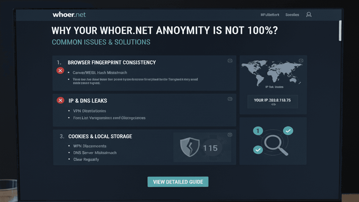 При ведении кросс-бордового электронного коммерции, интернет-маркетинга или любых сетевых активностей, требующих высокой защиты конфиденциальности, многие пользователи полагаются на такие инструменты, как Whoer.net, чтобы проверить степень маскировки их цифровых следов. Однако многие с удивлением обнаруживают, что их оценка проверки постоянно не достигает идеального 100%. Позади этого, казалось бы, простого вопроса скрывается сложная логика отпечатков пальцев и сетевой безопасности.