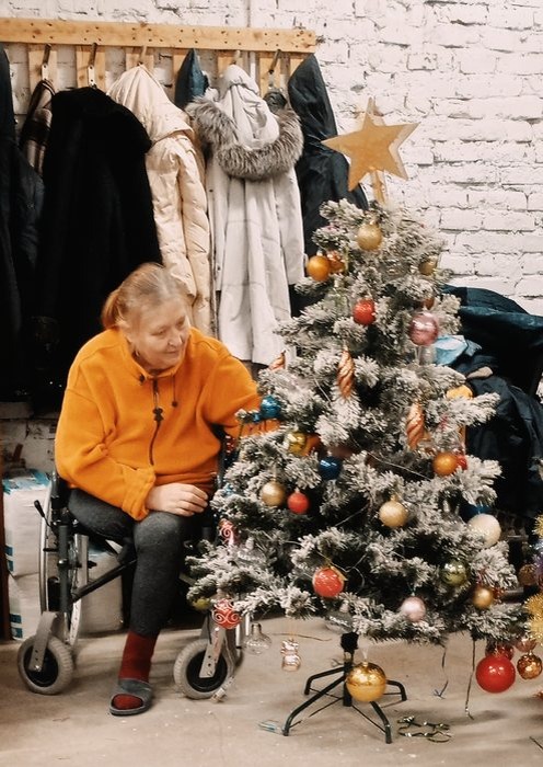 Уже совсем скоро! А пока идет активная подготовка. Ольга, наша старшая сестра и жена руководителя, сидит на диване в холле и разбирает коробки с елочными игрушками и гирляндами - их привезли благотворители. Рядом три елки - нужно наряжать. Ей помогают. Многие, в том числе и наша старая знакомая - Татьяна. У нее были проблемы с памятью. Но недавно Татьяна вспомнила, что она - медик! Теперь делает перевязки, измеряет давление, проводит другие процедуры. Сейчас она свободна, поэтому вешает игрушки и гирлянды на елочки. Еще одна давняя знакомая, если кто помнит - Людмила, вязавшая ежиков и другие игрушки - вырезает цветные объемные снежинки. Ими уже увешаны коридоры, комнаты, цех и столовая. Очень красиво. Виктор - и про него была публикация - изготавливает макеты церквей и других зданий, рисует картины, занимается садовой скульптурой. А недавно он создал целую серию авторских елочных игрушек, их мы повезем на ярмарку. А на хоздворе зарезали свинку. Вскоре зарежут еще одну. Они пойдут на