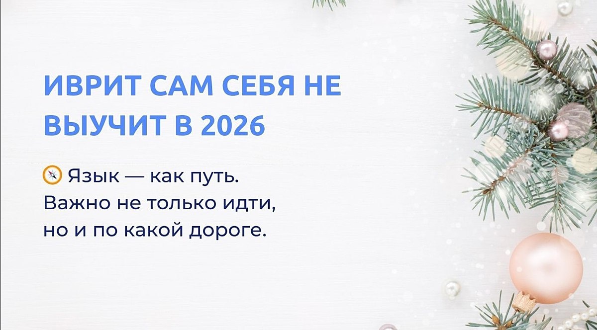 Последние дни года всегда особенные. В них и суета, и ожидание перемен, и тихий разговор с собой. Не в формате "успел / не успел". А честно: что получилось, а где было трудно. Если посмотреть на иврит без упрёков - какое место он занял в этом году? Стало ли легче говорить? Часто в такие моменты становится ясно: дело не в усилиях. А в том, как именно мы были с языком. 🧭 Язык — как путь. Важно не только идти, но и по какой дороге. Можно идти рывками - и быстро выдыхаться. А можно — ровно, спокойно, с опорой. И результаты приходят иначе. Я много лет вижу одну закономерность: регулярность и поддержка дают больше, чем энтузиазм и перегруз. Именно таким пространством я и сделала Клуб ИВРИКА. Чтобы язык входил в жизнь не как очередная цель, а как регулярная практика. Если вам откликается идея войти в новый год без гонки, вы можете просто посмотреть, как устроен клуб. 👉 Посмотреть, как всё устроено ⬇️ https://ivrika.ru/url/klubtgc