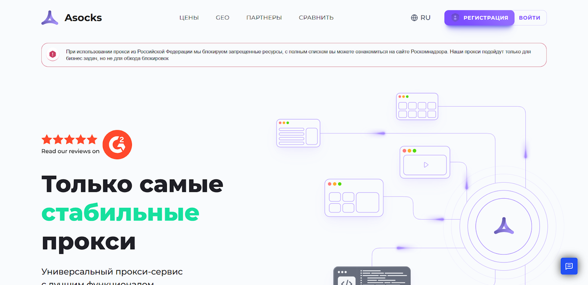 Тарифы: от 60 р/месяц для серверного или 269 р/месяц для индивидуального прокси.