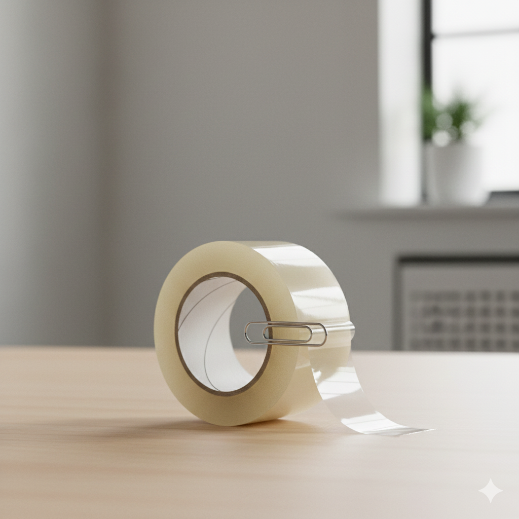 Каждый раз, когда нужно что-то упаковать, поиск прозрачного края скотча превращается в квест с ковырянием ногтями. Чтобы больше никогда не крутить рулон в руках, глядя на него под разными углами, используйте простой предмет из офиса или кухни. Что нужно сделать: Когда вы закончили пользоваться скотчем, подложите под липкий край обычную металлическую скрепку или обычную зубочистку. В следующий раз вам достаточно будет просто потянуть за этот «хвостик». Почему это работает: Скрепка или зубочистка создают физический барьер, который не дает клеевому слою плотно прилечь к рулону. Это создает видимую выпуклость и удобную точку захвата. Теперь «начало» скотча всегда будет под рукой, и вам не придется тратить нервы на его поиски. Лайфхак: Если под рукой нет скрепки, просто загните уголок самого скотча внутрь (липкой стороной к липкой), создав небольшую «нелипкую» закладку.
