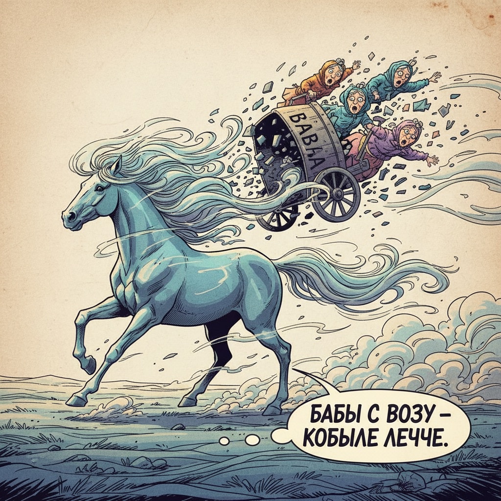 «Баба с возу — кобыле легче» — это не победный клич освобождённого мужчины. Это констатация катастрофы для всей упряжки. Брак — это не передача жизни в одни руки. Это совместное несение воза, где иногда один тянет, другой подталкивает, а иногда оба садятся и ругаются, глядя на непосильную ношу.