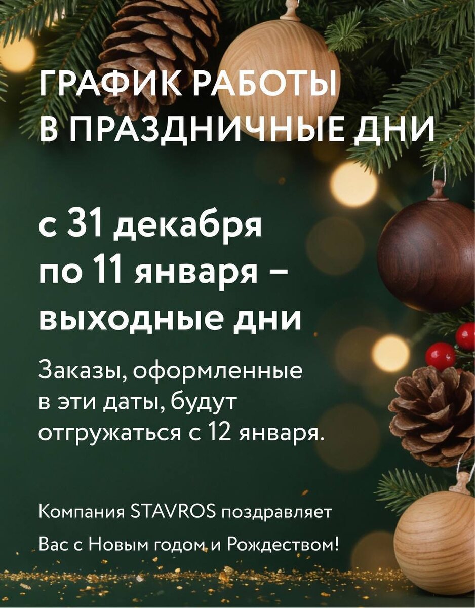 ! В этом году принимаем и отгружаем заказы до 30 декабря. ОФОРМИТЬ ЗАКАЗ: ➡️На нашем сайте https://www.stavros.ru/ ➡️Через менеджера в Telegram @STAVROS_manager ➡️Все регионы +78123094935 ➡️Телефон для Москвы +74953088174