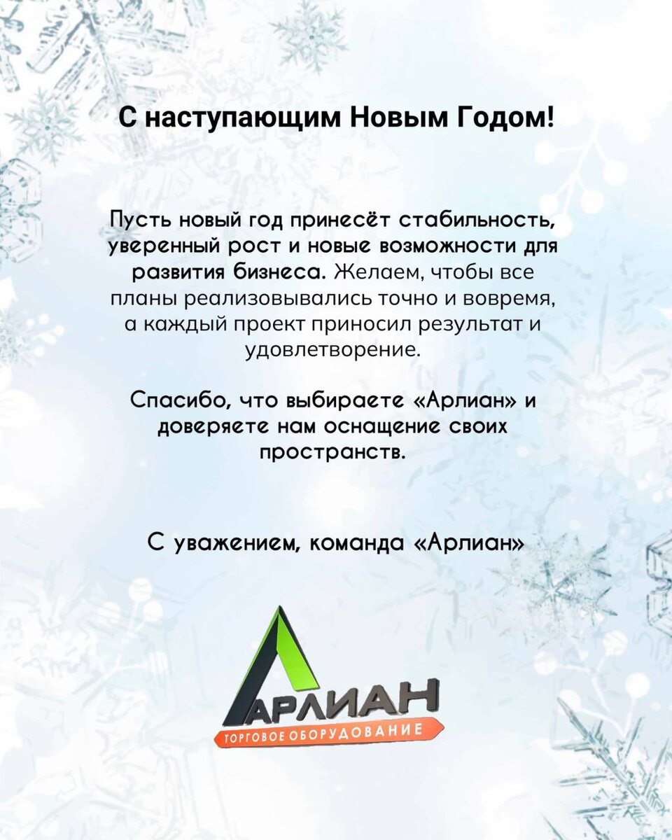 , поздравляем вас с наступающим 2026 годом❗️ Мы искренне ценим наше сотрудничество и в новом году готовы предлагать ещё больше надёжных решений, выгодных условий и профессиональной поддержки ⭐️ 🔥 Пусть 2️⃣0️⃣2️⃣6️⃣ год станет годом порядка, эффективности и уверенного движения вперёд. Желаем крепкого здоровья, финансового благополучия и успешных сделок! С любовью, команда «Арлиан» ❤️