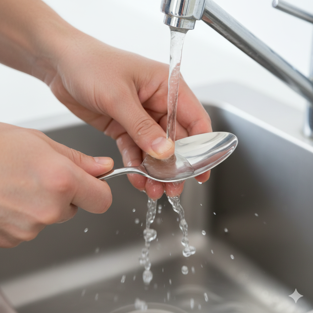 Что нужно сделать: Просто потрите руки под струей холодной воды о любой предмет из нержавеющей стали. Это может быть столовая ложка, лезвие ножа (осторожно!) или даже край кухонной мойки, если она стальная. Почему это работает: Запах лука и чеснока вызван молекулами серы. Когда вы трете руки о нержавеющую сталь, молекулы металла вступают в химическую реакцию с молекулами серы, связывают их и буквально «вытягивают» запах с вашей кожи на себя. Мыло так не умеет, потому что оно работает только с жиром и грязью, а не с химическими соединениями серы. Лайфхак: В магазинах даже продают специальное «стальное мыло» в форме бруска, но обычная ложка из ящика работает точно так же и совершенно бесплатно.