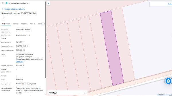 Название: Кадастровый номер: 26:01:131207:248, категория земель: земли населенных пунктов, площадь: 2000 кв