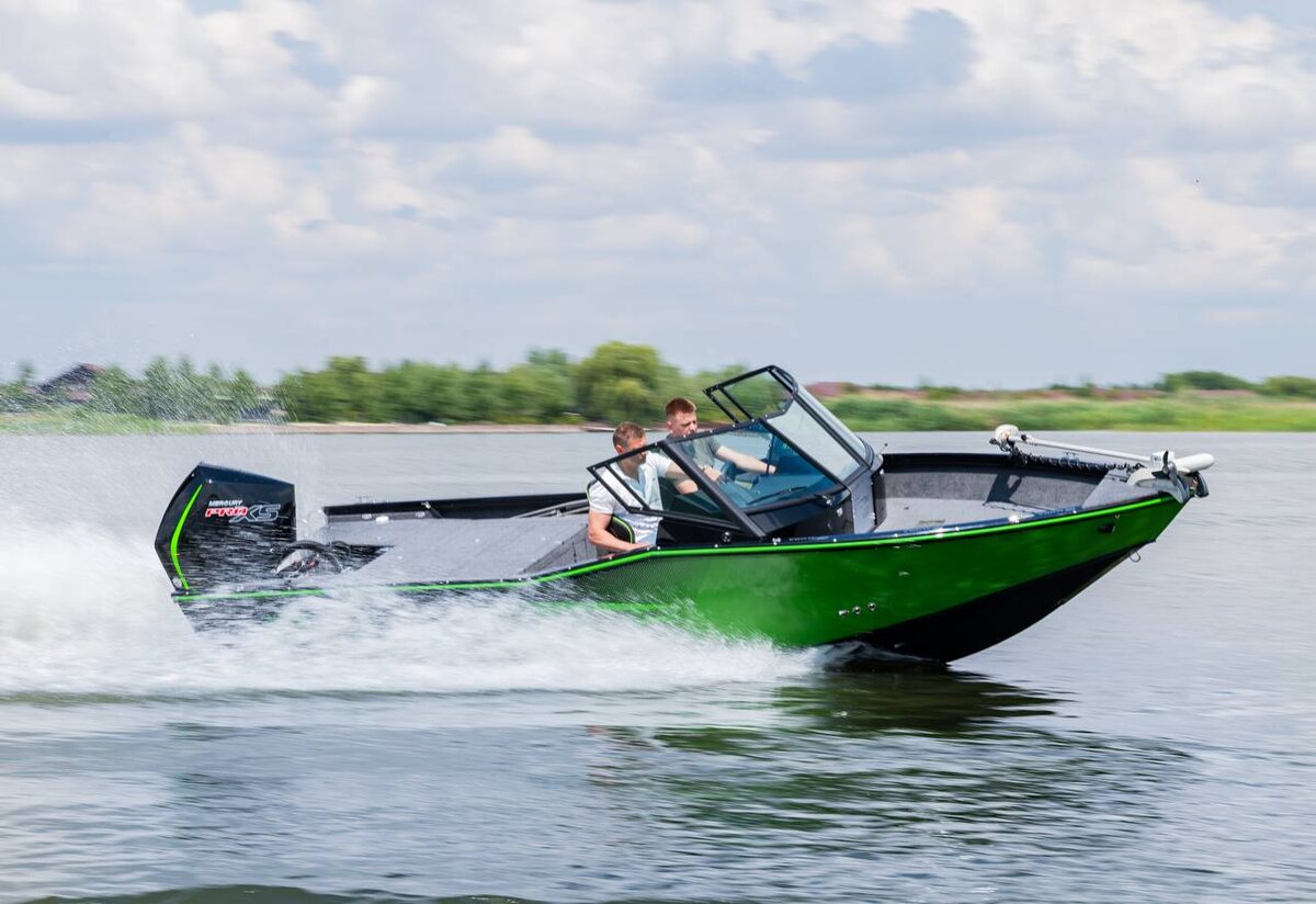 » Назначение: Мощный универсал для тех, кто не готов выбирать между профессиональной рыбалкой и комфортным семейным отдыхом. Это лодка, готовая к жестким условиям турниров, но при этом удобная для прогулок выходного дня. Главная фишка: Aluma Storm 577 — это воплощение философии «премиум в алюминии». Главное конкурентное преимущество — невероятно богатая базовая комплектация. Верфь использует роботизированную сварку, что обеспечивает идеальную геометрию корпуса. Уникальная система силового набора и блоки плавучести делают эту лодку одной из самых безопасных и тихих в классе. Широкий корпус (2.33 м) дает феноменальную остойчивость: три рыбака могут стоять у одного борта, и крен будет минимальным. Эмоция: Это «Business Class» среди алюминиевых лодок. Вы получаете не просто средство передвижения, а продуманный до мелочей инженерный продукт. Ощущение монолитности на волне, отсутствие вибраций и спортивная динамика дарят чувство полного контроля над стихией. Технические характеристики Дл