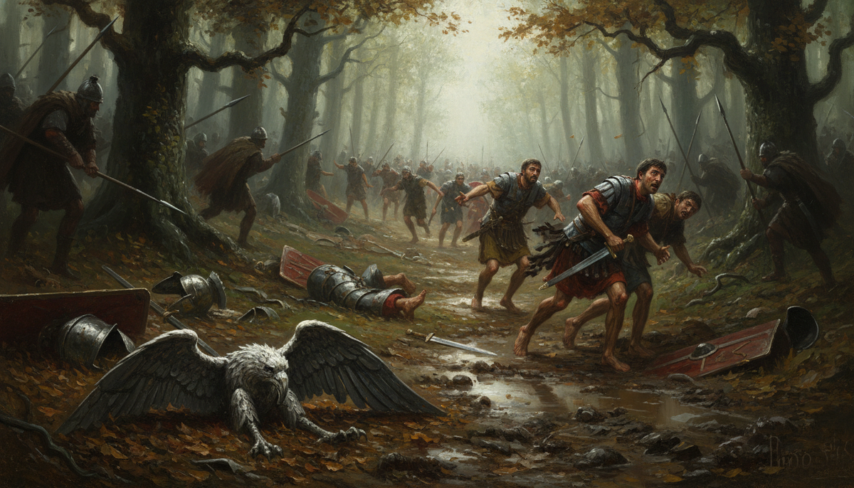 Из леса ударили германцы. Не лобовая атака — короткие налёты, копья в спины, исчезновение в чаще. Римляне не могли ни защититься, ни контратаковать. Три дня колонна пробивалась сквозь засады, теряя сотни людей каждый час.