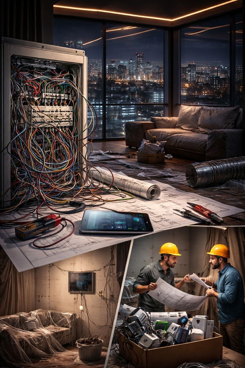 Когда уже сделана внутренняя отделка дома, приходится идти на компромиссы: сокращать функциональность, делать решения заметными, отказываться от части сценариев или мириться с менее удобной логикой работы системы. В результате умный дом есть, но он не соответствует ожиданиям.
