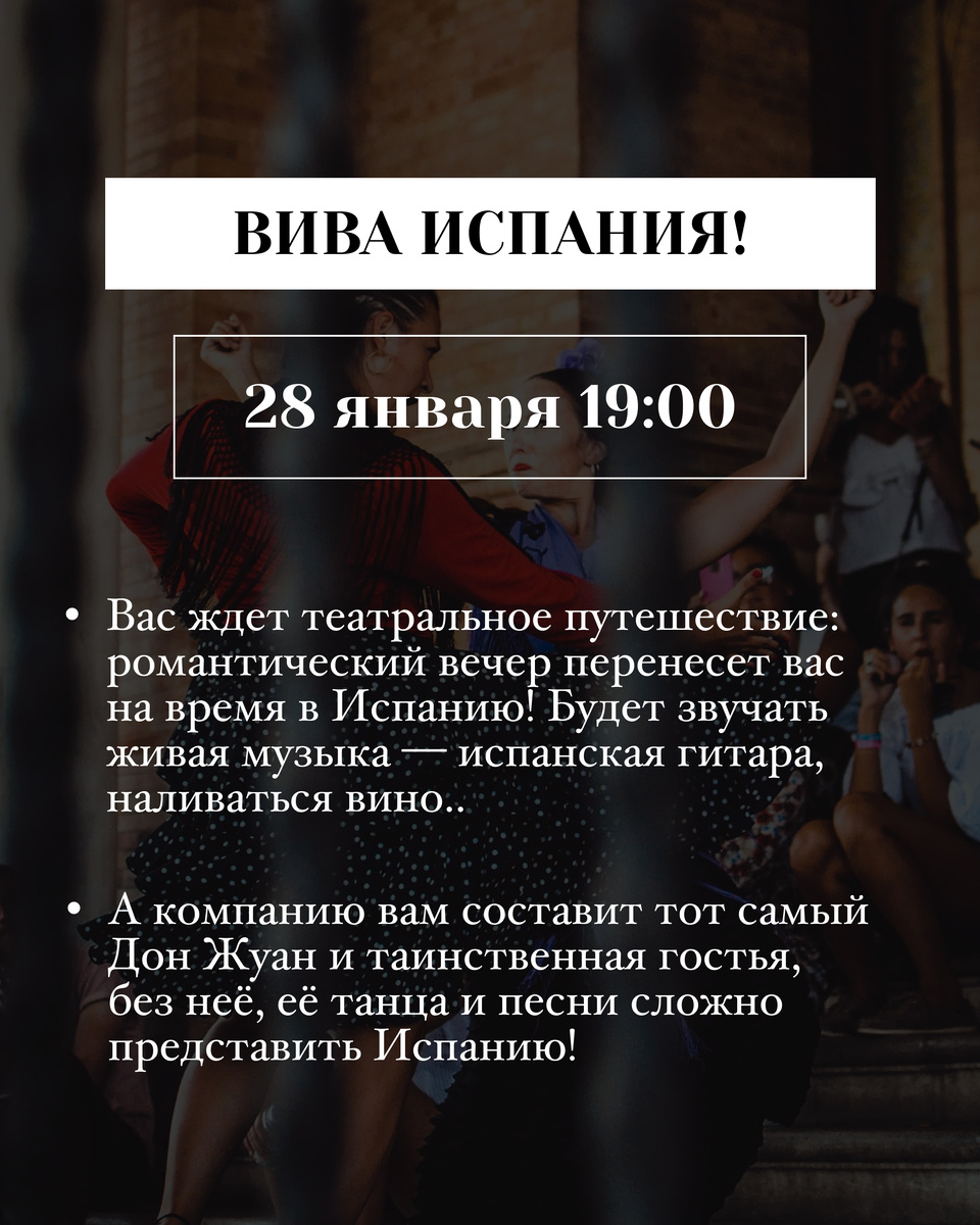 28 ЯНВАРЯ // ГАСТРОНОМИЧЕСКИЙ ТЕАТР В КРОМЕШНОЙ ТЕМНОТЕ «ВИВА ИСПАНИЯ!»🍇🇪🇸