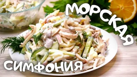 - Сборка салата: Добавьте заправку к морепродуктам и овощам, аккуратно перемешайте.