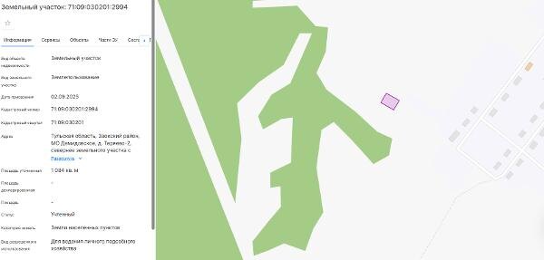Название: право заключения договора аренды земельного участка из земель населенных пунктов с кадастровым номером 71:09:030201:2994, площадь