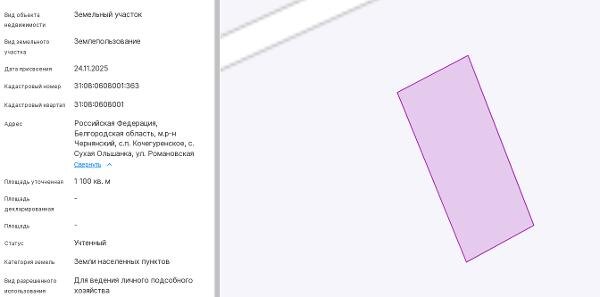 Название: Земельный участок с кадастровым номером 31:08:0608001:363