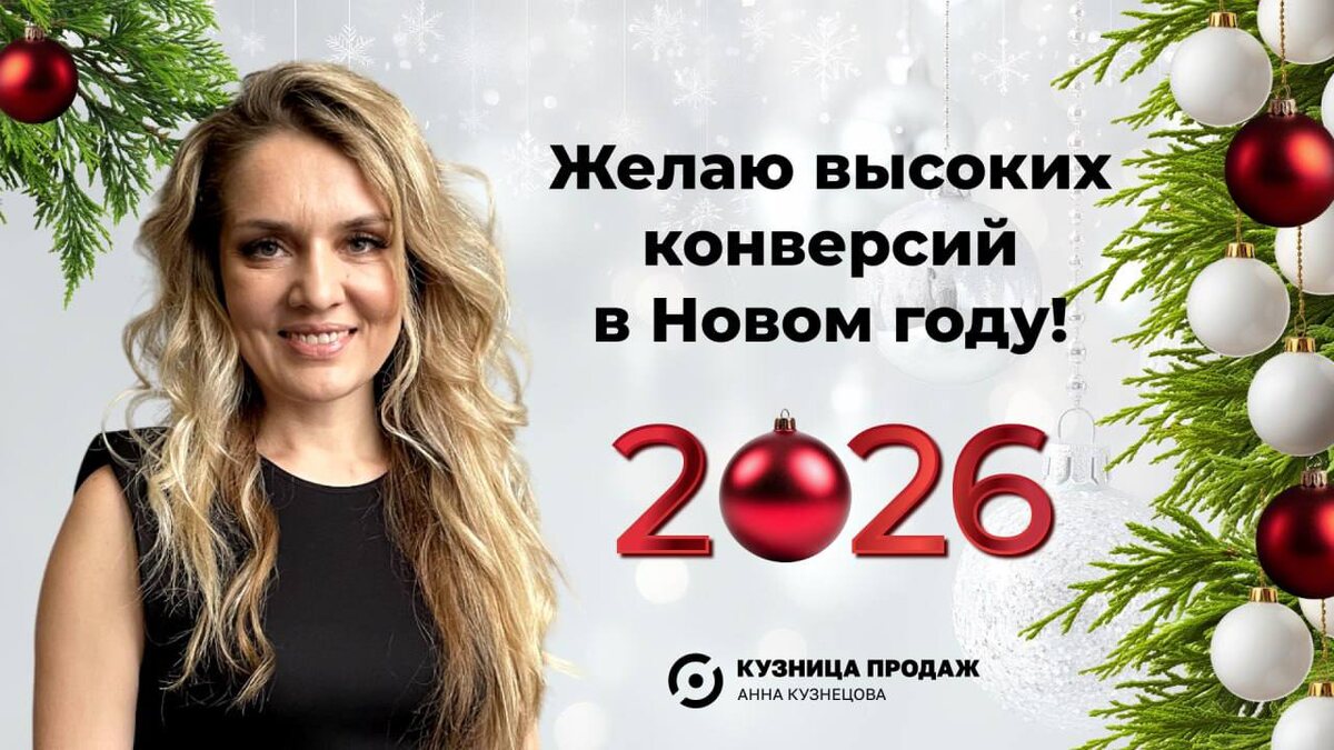 ! Поздравляем Вас с наступающим Новым годом! 🎄 Пусть он принесет Вам новые результаты, высокие конверсии и благодарных клиентов! И в честь праздника, дарим Вам скидку 20% на наши продукты 🎁 Чтобы воспользоваться скидкой, вводите промокод на странице оформления заказа NEWYEAR26 Программа для предпринимателей и руководителей ОП: https://kuznica-pro.ru/course_aop?utm_source=tg&utm_medium=newyear26 Школа продаж для менеджеров: https://kuznica-pro.ru/mop_komanda?utm_source=tg&utm_medium=newyear26 Мастергруппа для РОп-ов «Аналитика и Нейросети»: https://kuznica-pro.ru/analitika_neyroseti?utm_source=tg&utm_medium=newyear26 Аудит отдела продаж: https://kuznica-pro.ru/audit?utm_source=tg&utm_medium=newyear26 Промокод действует всего 5 дней - до 4 января С уважением, Анна Кузнецова и команда проекта "Кузница продаж"