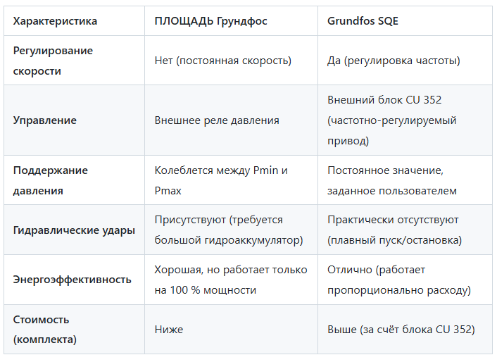 Сравнение серий скважинных насосов Grundfos SQ и SQE: ключевые отличия