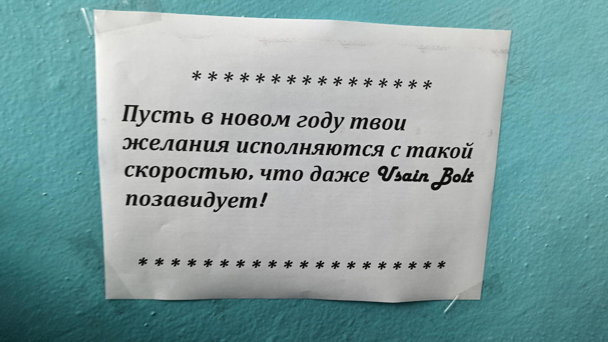 Новый начальник ЖКХ курортного города велела подчиненным в скорости выполнения работ ориентироваться на ямайского легкоатлета. «Пусть в новом году твои желания исполняются с такой скоростью, что даже Usain Bolt позавидует», - такое пожелание размещено на входе в департамент жилищно-коммунального хозяйства Ялты. Заметивший мотиватор главный редактор газеты «Ялта» Сергей Сардыко так прокомментировал это: «Видимо, новый начальник ДЖКХ Ялты Наталья Сергеевна Белоконь – человек с юмором». Усэйн Болт восьмикратный олимпийский чемпион и одиннадцатикратный чемпион мира по бегу на короткие дистанции.