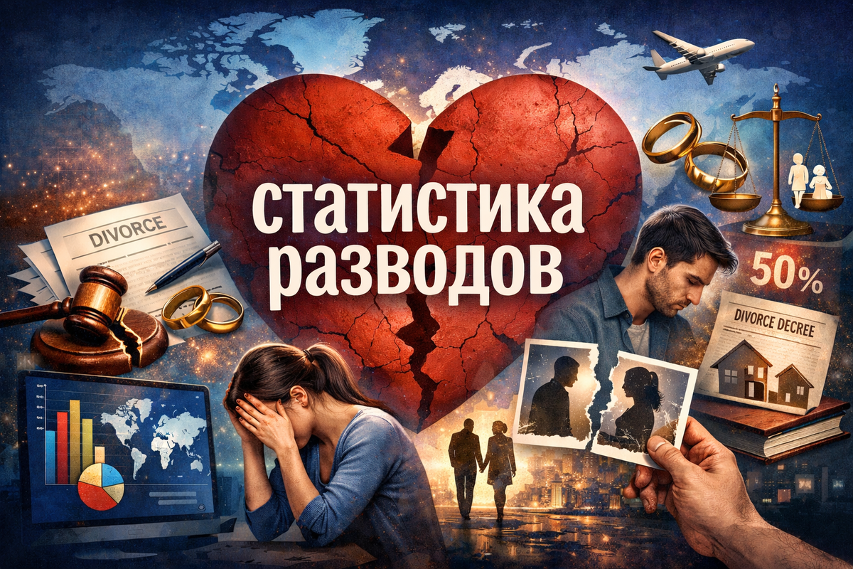 Разводы — не просто цифры в отчётах органов ЗАГС или Росстата. Это — отражение социальных, экономических и культурных трендов в обществе. В 2025 году разводы по-прежнему остаются одним из самых обсуждаемых вопросов в демографии России: и потому, что они влияют на семьи, детей и экономику, и потому, что показывают, как меняются ценности в обществе. По данным разных источников, Россия стабильно находится в тройке стран мира с высоким уровнем разводов: на каждое 10 браков приходится около семи-восьми разводов. Это означает, что около 70–80 % браков завершаются расторжением в течение определённого срока — один из самых высоких показателей в мире. При этом количество официально зарегистрированных разводов в России остаётся большим: 📌 В 2024 году было зарегистрировано примерно 784 000 разводов, и этот показатель несколько вырос по сравнению с предыдущими годами. В 2025 году данные по всему году ещё окончательно не подвели, но уже видно, что тенденция сохраняется — высокий уровень расторжени