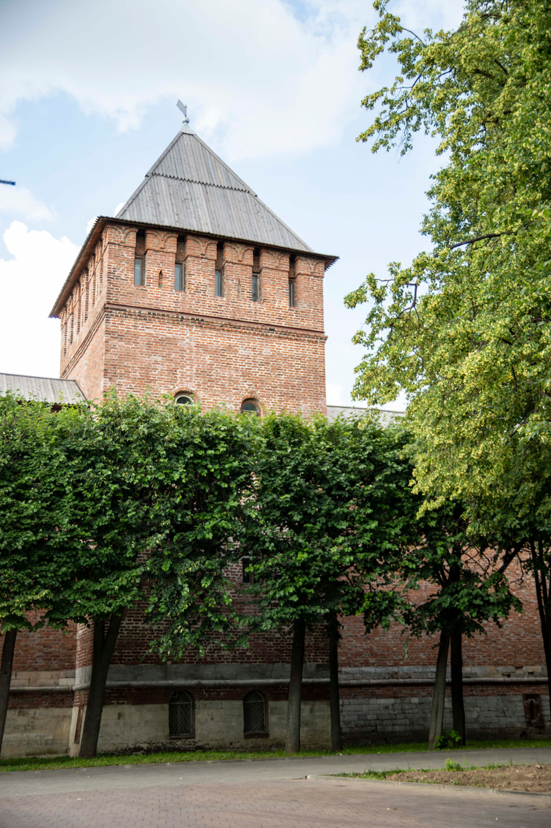 На средний уровень боя защитники крепости поднимались по лестницам. Внутри бойниц стояли легкие орудия. На верхнем ярусе два вида зубцов - глухие и с бойницами. Все это было накрыто деревянной крышей, со временем утраченной. Крепость была построена в 1595-1602 годах на месте старой деревянной, поставленной по указанию царя Ивана Четвертого. Архитектор - Федор Конь, по проекту которого построен Белый город в Москве. Структура Кремля была похожа на московскую, только вот ярусов боя сделали три, а не два. И башен здесь поставлено чаще. Еще и сама стена выше. Пушки - это уже было серьезно, деревянные крепости не справлялись со своей задачей.